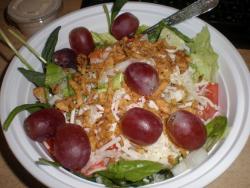 Spinach salad with tomato, onion and cheese medley and a drizzle of Three Diamond Dressing. Coffee milk beverage with a liberal pour of Rumchata.