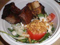 Went to The Butchery for eggs and had lunch there. Elk Pastrami & Bacon Breakfast Sandwich on potato loaf with fries, dip and a Porter.