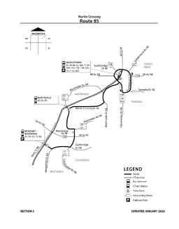 Calgary Transit route 85 Martin Crossing is a bus route that is designed to serve the community of Martindale, and connect customers to McKnight-Westwinds LRT Station and Saddletowne LRT Station.