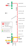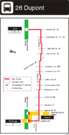 This route services Dupont and Annette Streets between Jane Street and Bedford Road. It also provides service on Bedford Road north of Bloor Street West. Its eastern terminal is St. George Station and the western terminal is Jane Station for its one branch, 26.